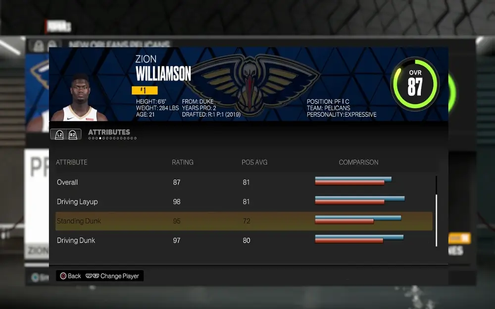 자이언 윌리엄슨은 괴물 덩커입니다. 그는 284파운드이지만 NBA의 거의 모든 사람들만큼 높이 뛸 수 있고 빨리 달릴 수 있습니다. Zion이 림을 향해 전속력으로 헤드를 얻었을 때 가장 좋은 방법은 방해를 피하는 것입니다. 체중과 관절에 가해지는 힘으로 인해 그는 부상을 입기 쉬웠고 경력의 대부분을 거리 옷을 입고 옆자리에 앉아 있었습니다. NBA 2K23의 좋은 점은 부상을 제거하고 그와 함께 매 경기 페인트를 지배할 수 있다는 것입니다. 자이언은 2020-21 시즌 평균 27득점, 7.2리바운드, 야투율 58%라는 놀라운 기록을 세웠다. 그는 지난 시즌 내내 발 부상에서 회복하고 있었다.