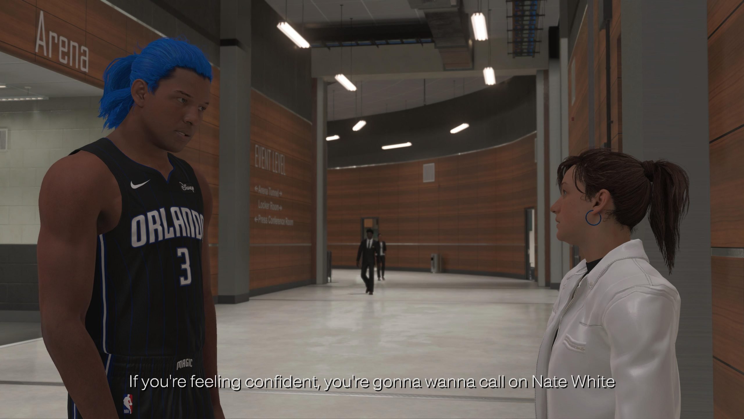 Nate White는 더 나은 용어가 없기 때문에 바늘 모양입니다. 그는 당신에게 세 가지 중 더 어려운 질문을 할 것이며 일부 사람들이 당신에게 금기시할 수 있는 주제에 대해 이야기하는 것을 두려워하지 않습니다. 당신의 라이벌 Shep Owens. 그는 한 번의 턴오버와 함께 14-5-14-1-1 라인을 넣은 후 당신의 게임에서 네거티브를 발견할 기자입니다. 그러나 그의 질문은 악의적이지 않으며 특히 더 높은 난이도에서 플레이하는 경우 MyCareer의 도전에 대비하는 좋은 방법이 될 수 있습니다.