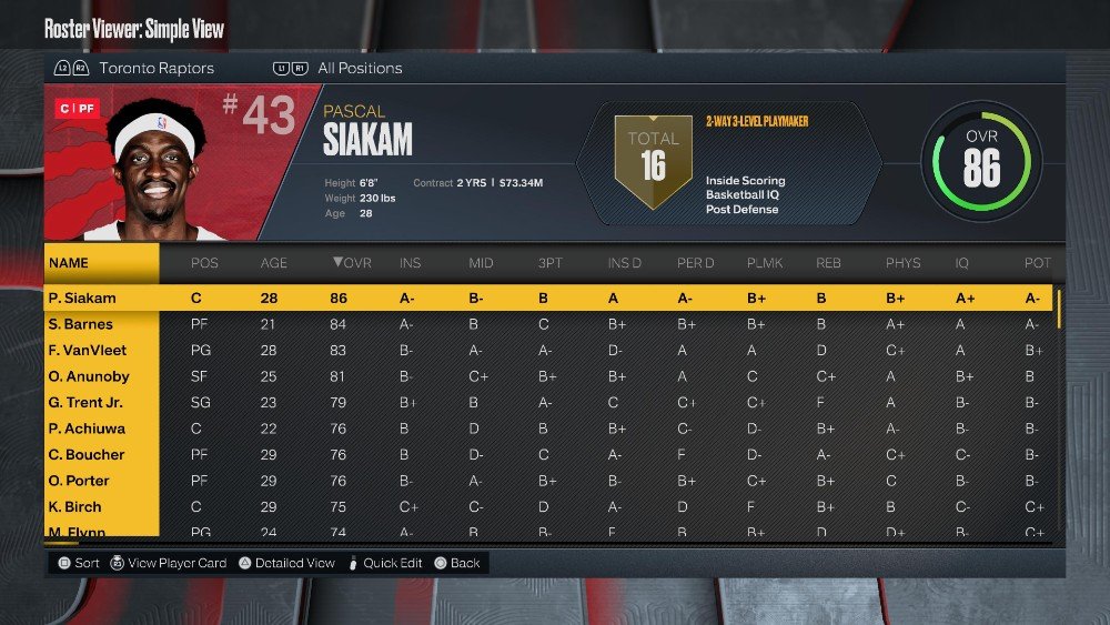 NBA 2K23에서 Pascal Siakam과 Fred VanVleet의 압박을 완화하기 위해 토론토의 센터 자리를 차지하는 것이 가장 좋습니다. 득점원이 골대에서 격리할 기회를 주는 시나리오도 있습니다.