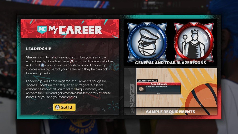 다른 중요한 참고 사항은 게임 후 미디어 스크럼 및 프레서에서 응답을 통해 리더십 포인트를 얻을 수 있습니다.. 파란색 또는 빨간색 아이콘이 표시되며(브랜딩을 위한 것일 수도 있으므로 주의 깊게 살펴보세요!) 다음 중 어떤 항목에 대한 안내가 될 것입니다. 장군은 파란색, Trailblazer는 빨간색. 경로를 선택하면 첫 번째 시즌이 완료되기 훨씬 전에, 아마도 올스타 휴식 시간이 되기도 전에 파란색 또는 빨간색에 대한 모든 기술을 잠금 해제하기에 충분한 점수를 얻을 수 있으므로 계속 진행하십시오.