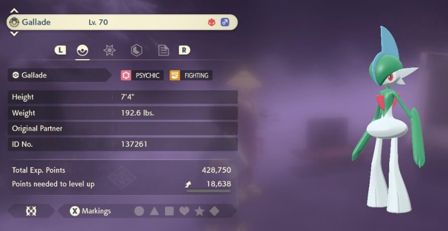 Gallade는 보조 격투 유형으로 약점을 추가합니다. 비행과 요정. 그러나 약점을 다음으로 되돌린다. 버그와 다크가 일반 데미지로 돌아갑니다.. 에 대한 싸움은 매우 효과적입니다. 강철, 얼음, 일반, 바위.