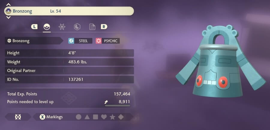 Bronzong은 전투에서 자신을 유지하기에 충분한 공격 화력을 갖춘 Psychic 유형의 탱크입니다.