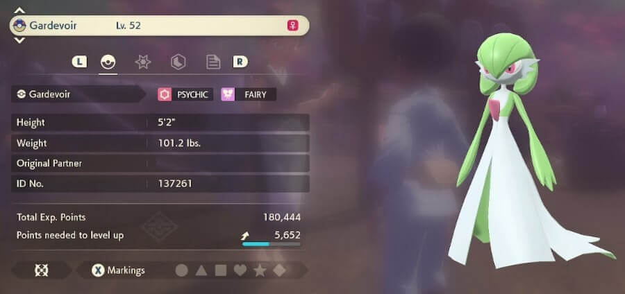 Gardevoir는 특수 공격만 배우며 특수 공격 스탯이 높아 특수 방어가 높은 적도 물리칠 수 있습니다. Dazzling Gleam, Confusion, Draining Kiss, Psychic, Moonblast 및 Aura Sphere와 Recover 및 Calm Mind와 같은 상태 공격을 배웁니다. Charge Beam, Hyper Beam, Ice Beam, Mystical Fire, Shadow Ball 등도 배울 수 있습니다.