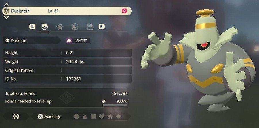 Dusknoir는 높은 방어 능력을 가지고 있습니다. 135방위 및 특수방위. 공격력도 100이 넘습니다. 그러나 다른 통계는 특수 공격이 65, 속도와 HP가 45로 중간 수준입니다. 대부분의 고스트 유형은 특수 공격을 선호하므로 공격 통계가 높은 Dusknoir는 이례적입니다.