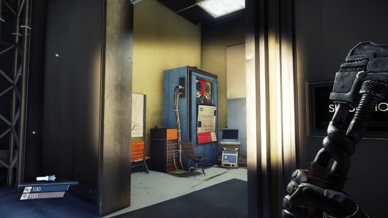 게임에서 얻을 수 있는 첫 번째 무기는 렌치입니다. 당신이 장비한 유일한 무기라면 팬텀을 물리치는 것은 거의 불가능합니다. 아파트에서 탈출하면 시뮬레이션 브리핑 룸 표지판을 따라가십시오.. 방에 당신이 올라갈 수 있는 키가 큰 테이프 드라이브가 있습니다. 서류 가방을 열고 디스럽터 스턴 건 수집. 디스럽터 스턴 건은 치명적이지는 않지만 도망갈 시간을 더 줄 수 있고 무방비 상태에 있는 적을 공격할 기회도 제공합니다.