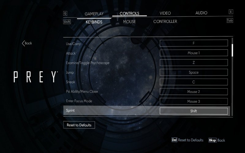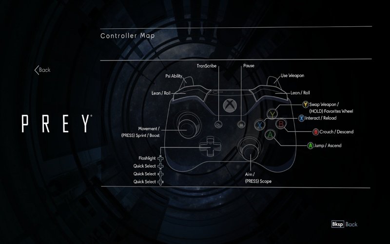다음은 Prey에 대한 팁이 포함된 전체 컨트롤입니다.