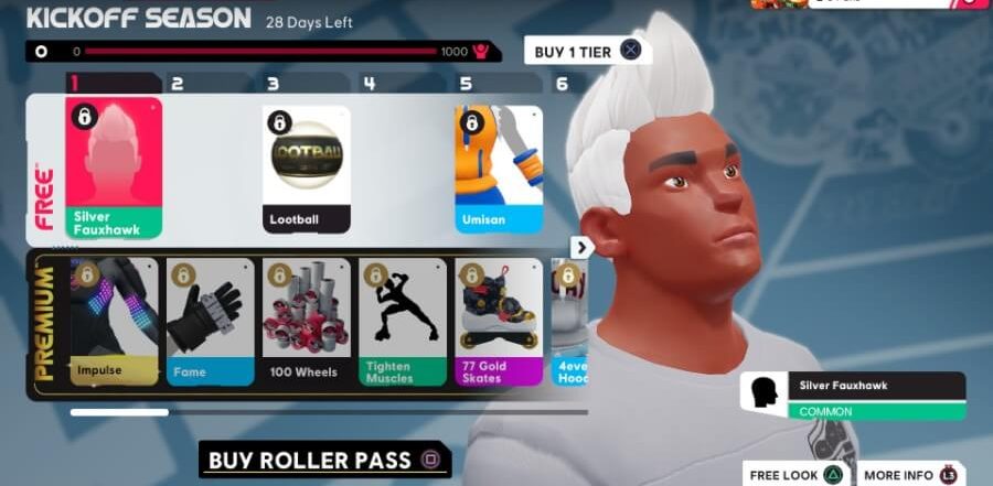 레벨업에 대한 보상을 얻을 수 있습니다. 시즌의 롤러 패스를 구매하면 획득한 각 레벨에 따라 보상을 받게 됩니다.. 그렇지 않으면 프리 티어가 다른 모든 레벨에서 보상을 제공합니다. 대부분은 머리카락과 복장과 같은 캐릭터 커스터마이징 아이템이지만 전리품도 있습니다(아래에서 더 자세히).