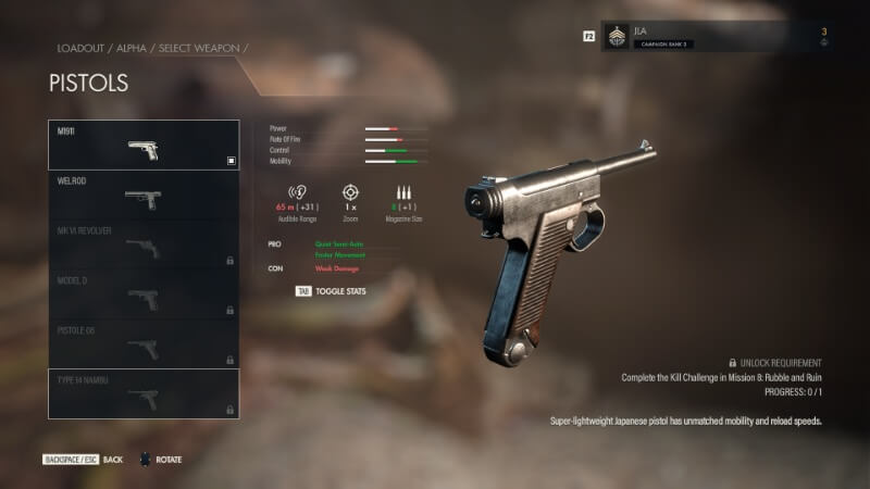 컨트롤이 많고 피해량이 많지 않은 또 다른 권총은 Type 14 Nambu입니다. 탄창 크기가 제한된 SMG를 사용하는 것과 같습니다.