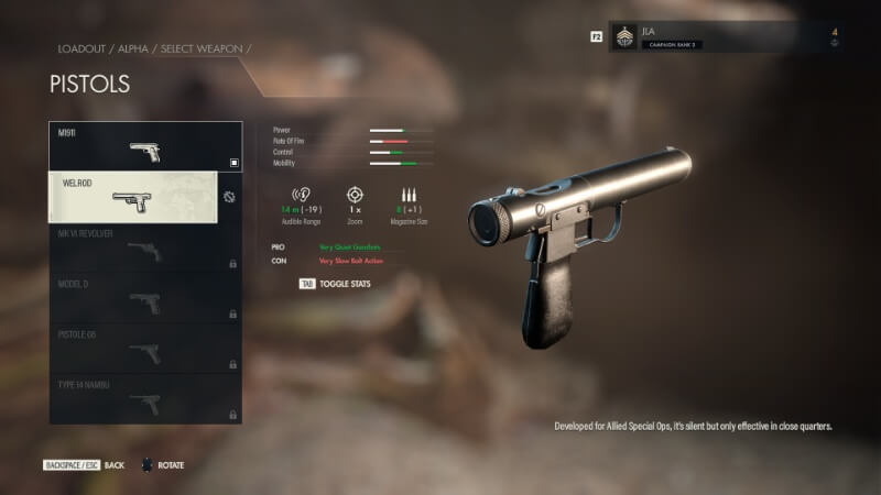 Sniper Elite 5의 권총은 3차 무기로 분류됩니다. 일부는 SMG보다 데미지가 더 높기 때문에 재장전 사이에 2차 무기와 3차 무기를 교체할 수 있습니다.