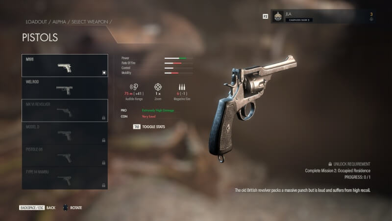 MK VI 리볼버는 3차 무기로 선택해야 하지만 적이 경보를 울릴 수 있는 상황에서는 사용하지 마십시오.