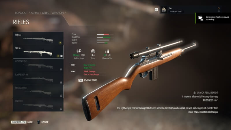 Sniper Elite 5의 모든 저격 소총 목록