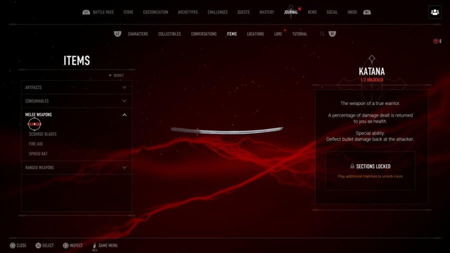 이 목록에 있는 유일한 근접 무기인 Katana는 Katana의 특수 능력으로 인해 스컬지 칼날을 능가합니다. 총알을 공격자에게 되돌릴 수 있습니다. Scourge Blades의 특수 능력은 돌진 베기입니다. 이는 훌륭하지만 피해를 위해 총알을 튕겨낼 수 있다는 것은 전투의 흐름을 바꾸는 데 도움이 될 수 있습니다. 장점으로는 두 무기 모두 피해를 입었을 때 일부 건강을 회복. Katana는 또한 4가지 근접 무기 중 가장 긴 사거리를 가지고 있는 것 같습니다. 다른 근접 무기인 Fire Axe와 Spiked Bat, 특별한 능력이 없다.