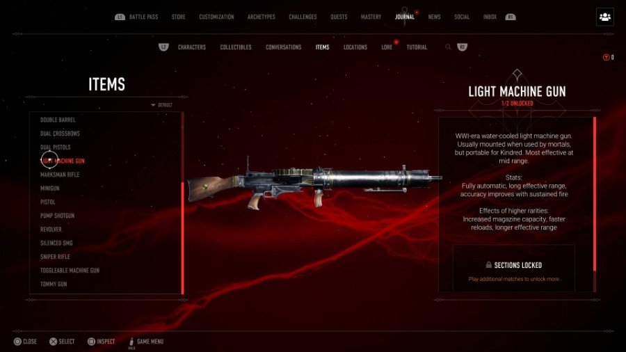 이 LMG는 1차 세계대전 당시의 “수냉식” 총입니다. 완전 자동이며 방아쇠를 누른 상태에서 발사 속도가 증가하는 9-Barrel과 달리 LMG의 지속 사격으로 정확도 향상. 다행히도 상당한 양의 탄약을 보유하고 있으며 Bandolier 특전이 있는 경우 추가 탄약으로 시작합니다! LMG는 중거리에서 가장 좋지만(어쨌든 대부분의 시간을 원하는 위치일 것입니다), 지속적인 발사의 정확도는 근거리에서 유용할 수 있습니다. 더 높은 희귀도에서 LMG는 더 큰 탄창, 더 빠른 재장전 및 더 긴 범위를 얻습니다.