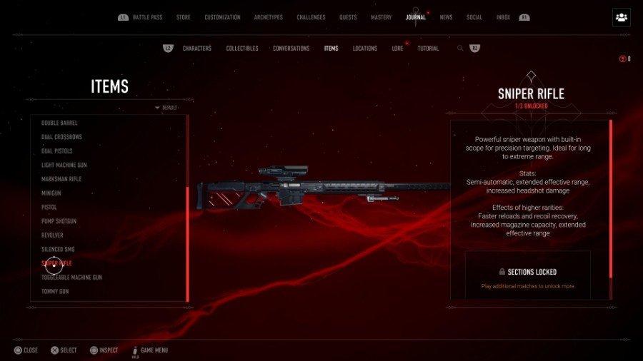 스나이퍼 라이플은 은밀한 장거리 사냥을 선호하는 사람들에게 가장 적합합니다. 이것은 두 개의 Nosferatu 전형 중 하나를 가진 사람들에게 가장 좋을 것입니다. 특히 프라울러와 그 원형 능력, 정찰 파물루스. 예상대로 저격소총은 매우 장거리에서 매우 효과적입니다. 더 나은 정확도를 위한 범위가 있는 게임에서 총뿐만 아니라 몇 안 되는 것 중 하나입니다. 저격 소총 정밀 탄약이 필요합니다. 하는 반자동이다. 헤드샷 데미지 증가. 더 높은 희귀도에서 저격 소총은 더 빠른 재장전, 더 나은 반동 회복, 증가된 탄창 및 더 긴 사거리를 얻습니다. 그러나 저격 소총만 있으면 근거리에서 잡히지 않도록 주의하십시오. 항상 보조 총을 소지하십시오!