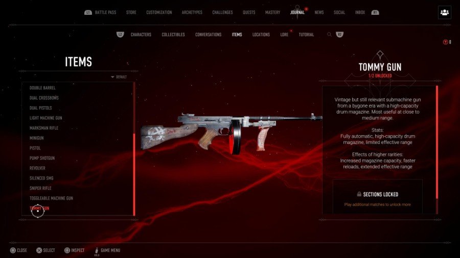 초기 헐리우드 영화에서 가장 유명한 무기로 등장하여 유명해진 클래식 총인 Tommy Gun은 여전히 ​​Bloodhunt에서 사용할 수 있는 편리한 총입니다. 완전 자동 총에는 게임의 다른 총과 달리 탄약통이 있습니다. 드럼이 있지만 미니건과 달리 토미 건을 재장전할 수 있습니다. Tommy Gun은 중거리에서 가장 좋지만 그 이상은 효율성이 크게 떨어집니다. 더 높은 희귀도에서 Tommy Gun은 더 빠른 재장전, 더 큰 탄약통 및 더 긴 유효 범위를 얻습니다.