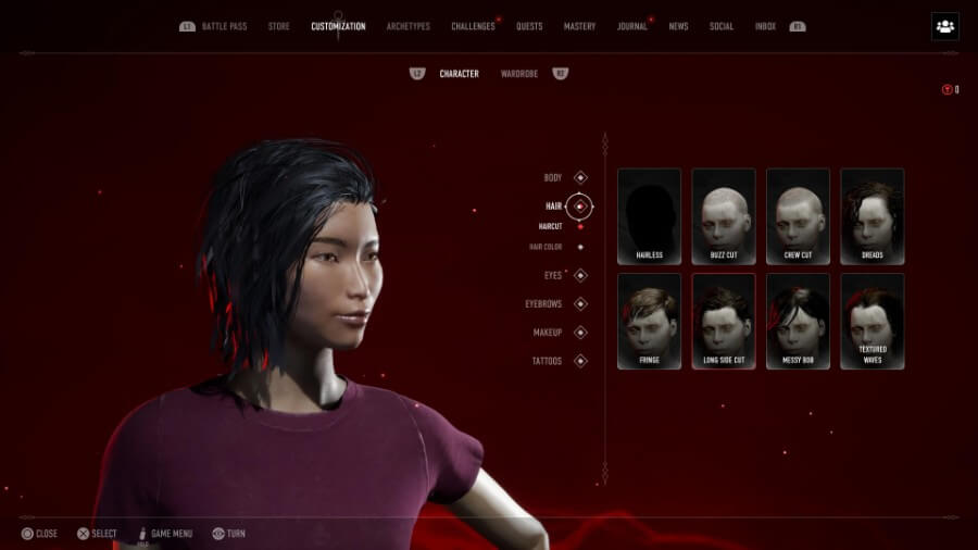 그런 다음 선택한 뱀파이어의 모양을 사용자 지정할 수 있습니다. 첫 번째 사진은 “Strong Suit” 의상을 입은 세이렌을 보여주지만 선택할 수 있는 다른 몇 가지가 있습니다. 그런 다음 게임 내 상점(메뉴의 두 번째 탭)으로 이동하여 추가로 구매할 수 있습니다. 여기에는 헤어스타일, 메이크업, 문신 등이 포함됩니다! Founder’s Ultimate Edition을 구입했다면 수많은 사용자 정의 아이템을 갖게 될 것입니다.