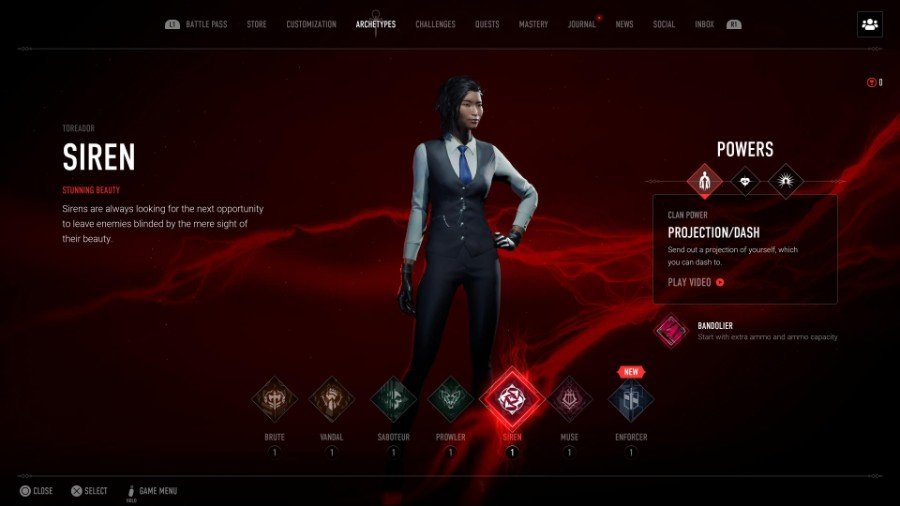 게임 플레이를 위해 선택한 원형은 다음과 같습니다. 투우사 사이렌 주로 패시브 파워 때문입니다(아래에서 자세히).