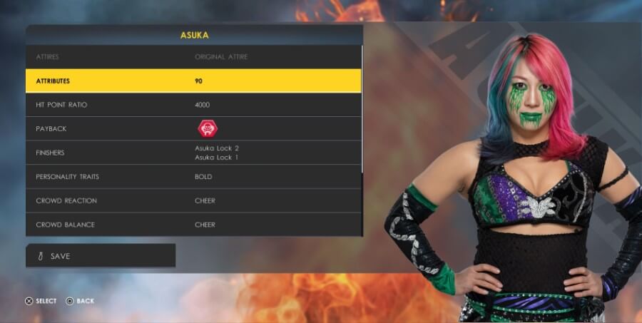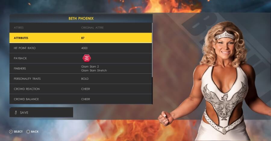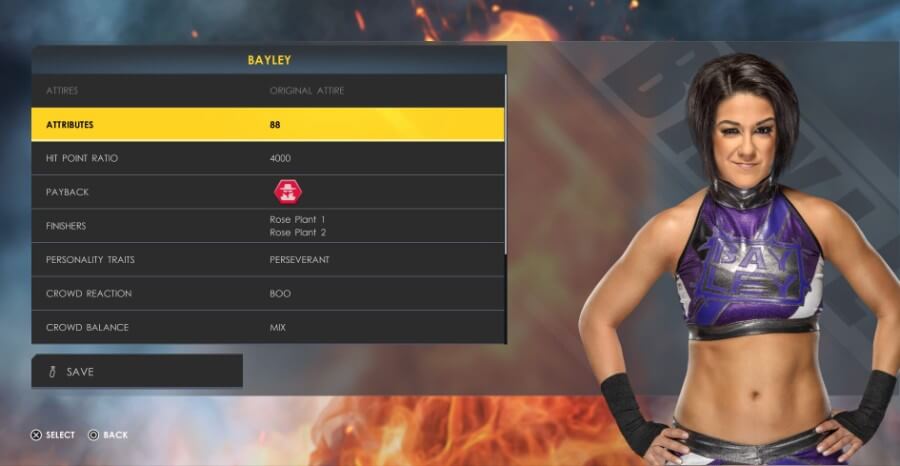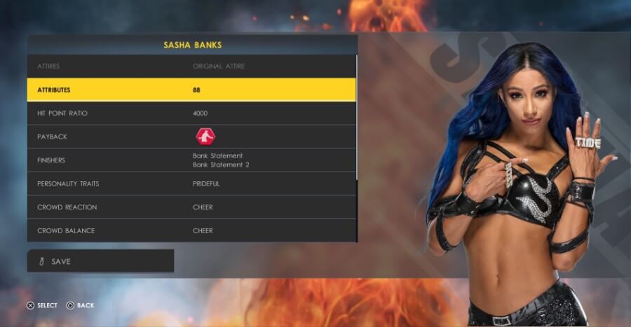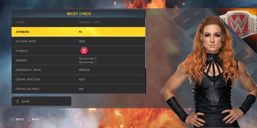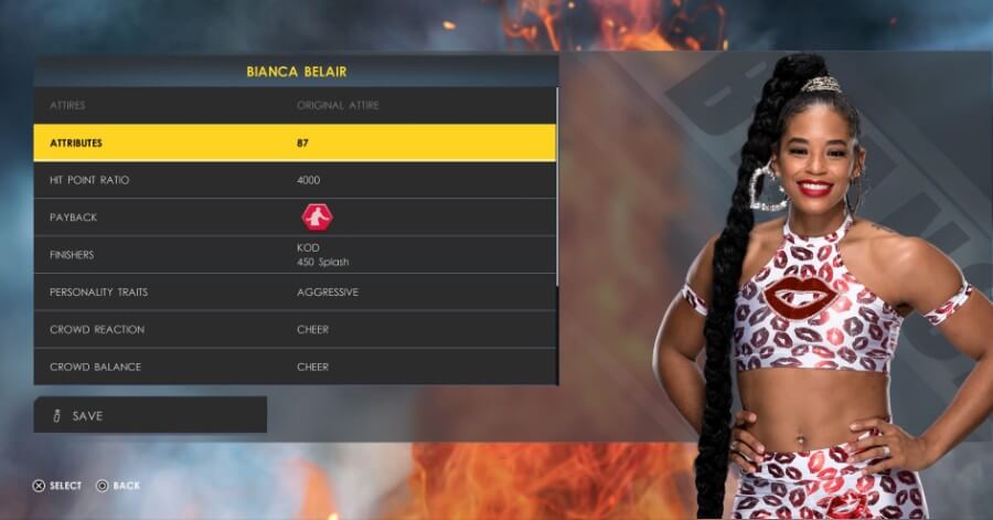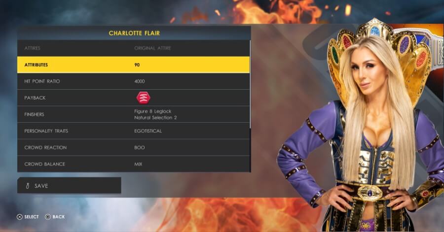 Flair는 Smackdown Women’s Champion으로 게임을 시작합니다.