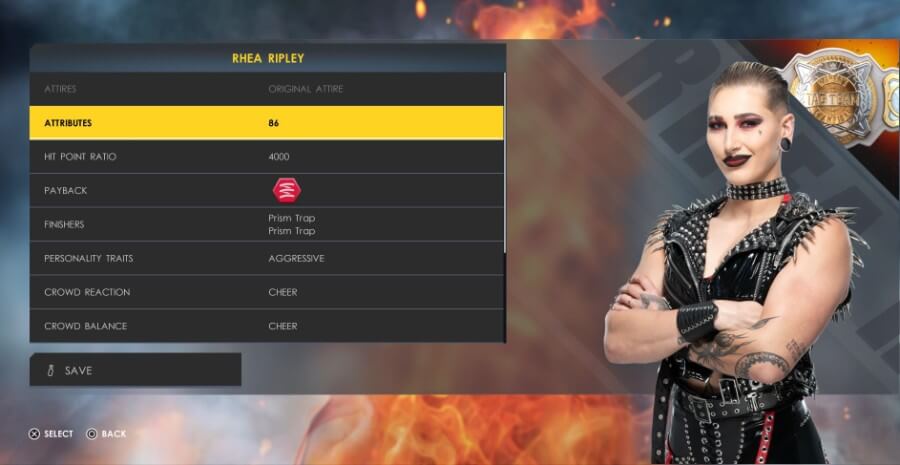 그녀는 Raw Women’s Champion으로 게임을 시작합니다.