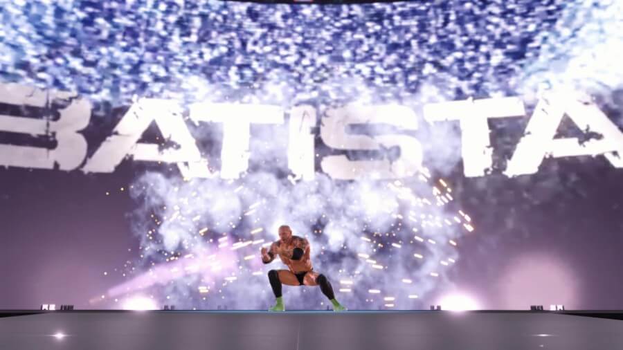 에뮬레이션에 대해 논의하고 싶다면 Batista의 입장을 살펴보십시오. 위의 파이로 포즈는 “I Walk Alone” 테마를 사용하여 마무리된 많은 바이러스성 Twitter 또는 TikTok 비디오에서 사용되었습니다. Batista가 팔로 신호를 보내는 파이로의 끝은 파이로의 짧은 일시 중지에서 음악이 다시 재생될 때 항상 오른쪽에 맞춰집니다. 모든 의미에서 환상적인 WWE 입장입니다.