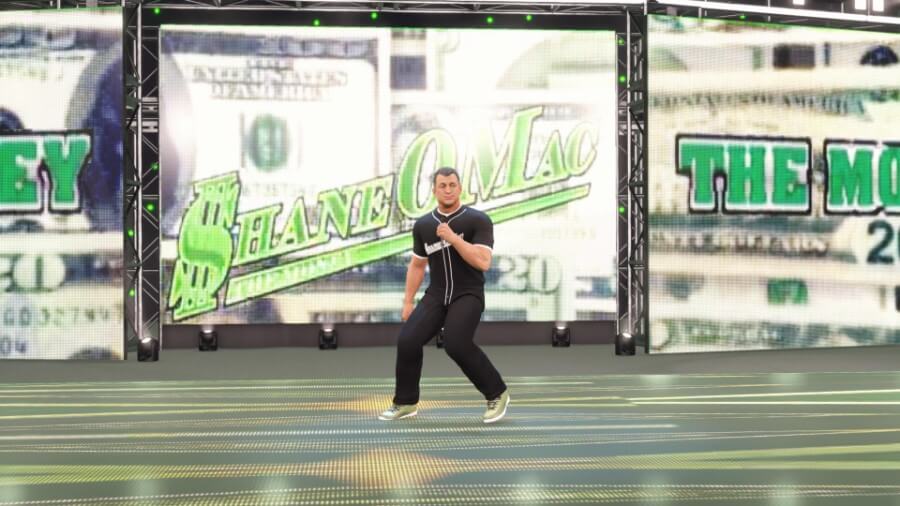 입구 무대를 가로질러 전통적인 Shane O’Mac 셔플을 보게 될 것입니다. 개발자들은 그가 무대를 가로질러 뒤섞일 때 그의 팔 동작을 잘 잡아냈습니다. 그가 링에 들어가면 그는 경기 중에도 사용할 동일한 셔플을 앞뒤로 수행합니다.