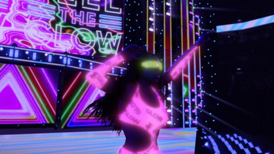 나열된 모든 입구 중 아마도 가장 “재미있는” Naomi’s는 모두 “빛나는 기분”을 느끼게 하는 것입니다. 그녀의 음악은 경기장에 불이 꺼지자 히트합니다. 그녀는 야광 장비와 안경으로 나타납니다. 그녀는 그녀의 장비에 보이는 유일한 빛인 춤을 추며 매혹적인 대조를 만들어냅니다. 춤을 추고 나면 더 많은 가시성을 제공하기 위해 Tron과 다른 조명이 작동할 때 경사로를 미끄러져 내려갑니다.