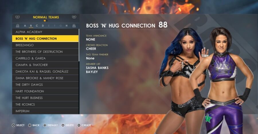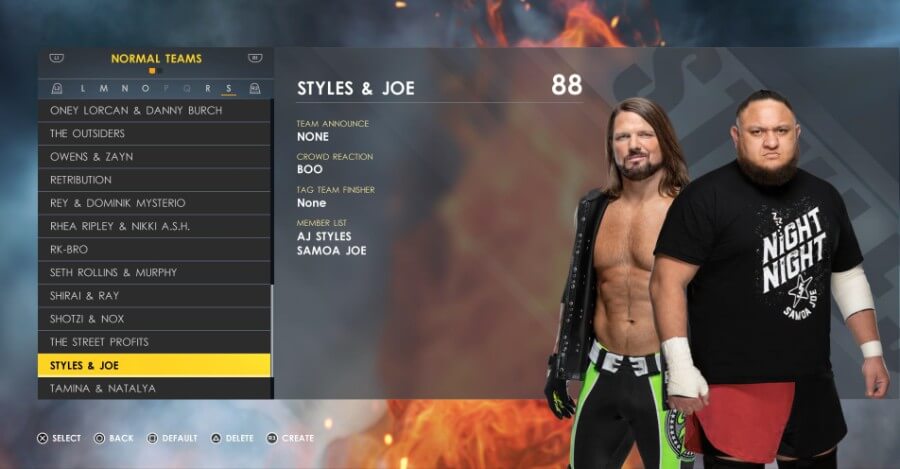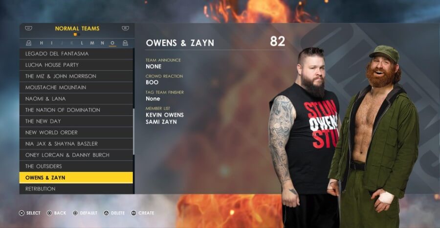 이러한 버전의 캐릭터는 과거에 팀을 구성했을 때와 많이 다르지만 대부분 과거에 사용한 것과 동일한 동작을 사용합니다. Owens의 힘과 Zayn의 속도를 사용하여 균형 잡힌 공격과 혼합 공격을 수행하십시오. 비록 그들이 지금까지 가장 낮은 평가를 받은 팀이지만, 그것이 당신을 속이게 하지 마십시오.