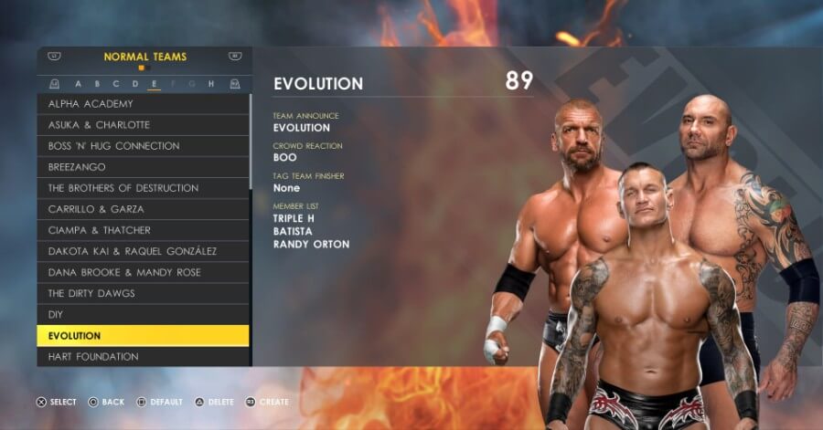 Ric Flair는 WWE 2K22의 유일한 버전이 80년대 버전이기 때문에 포함되지 않습니다. 추가할 수는 있지만 캐릭터 표현의 차이로 인해 함께 있을 때 약간 거북할 수 있습니다.