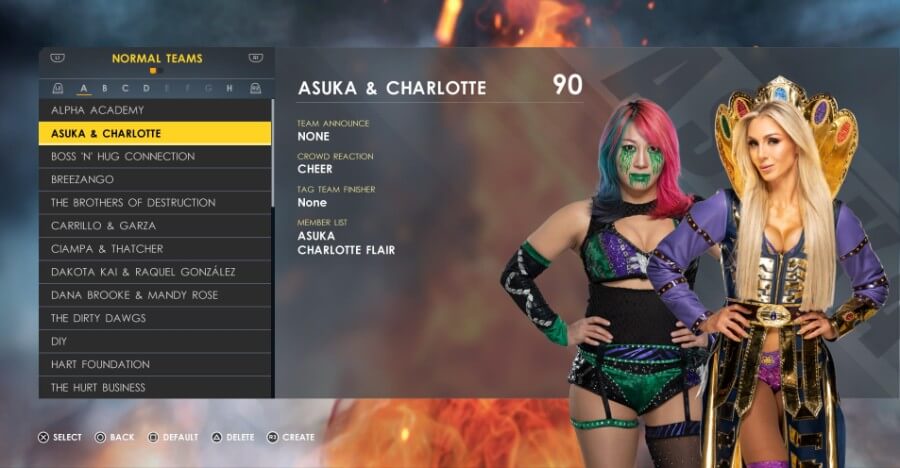 오랜 라이벌인 Asuka와 Charlotte Flair는 실제로 함께 전 여성 태그 팀 챔피언입니다. 그들이 아니더라도 그들은 게임에서 가장 높은 평가를 받은 두 명의 여성 레슬러(베키 린치 뒤)입니다. 그들은 Asuka의 맹렬함과 기술적 능력이 Flair의 운동 능력과 일치하는 강력한 듀오를 만듭니다.