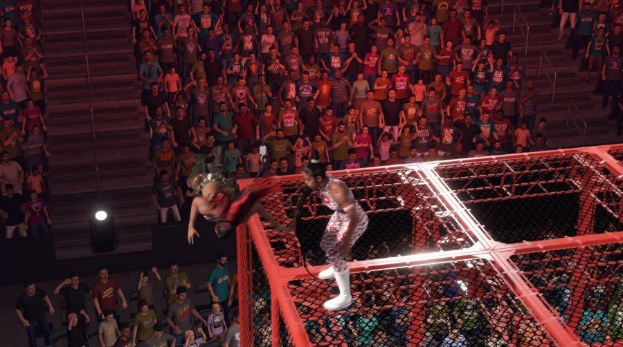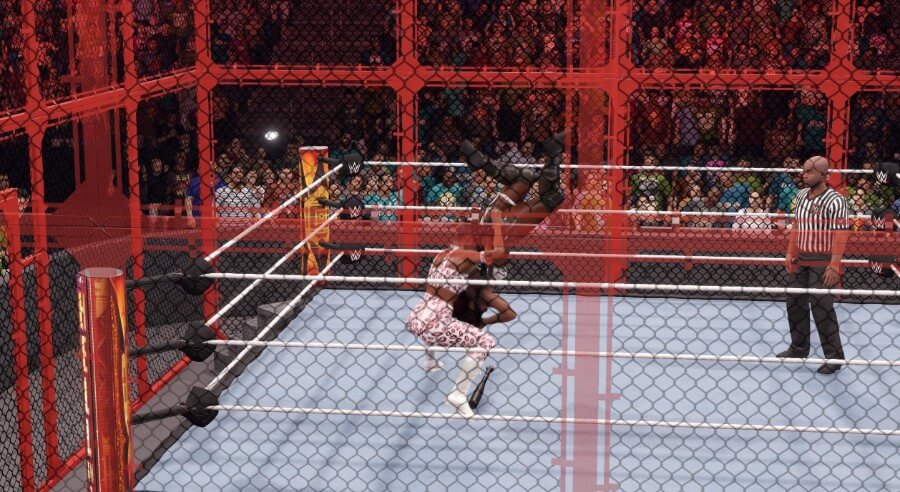 이 경기는 WWE 2K22와 헬 인 어 셀 2020 경기장에서 플레이할 수 있습니다. 사용되는 셀은 세스 롤린스가 핀드와의 경기에서 악명 높은 대형 레드 셀로, 그의 경기를 덮은 후자의 레드 라이트로 인해 링에서의 행동을 식별하기 어렵습니다. 좋은 소식은 당신의 시야가 그 경기 동안처럼 방해받지 않는다는 것입니다!