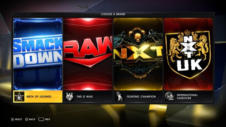 흥미로운 트위스트에서 조타 장치를 선택할 수 있습니다. Smackdown, Raw, NXT 또는 NXT UK. 각각은 다음과 같은 자체 전원 카드를 가지고 있습니다.