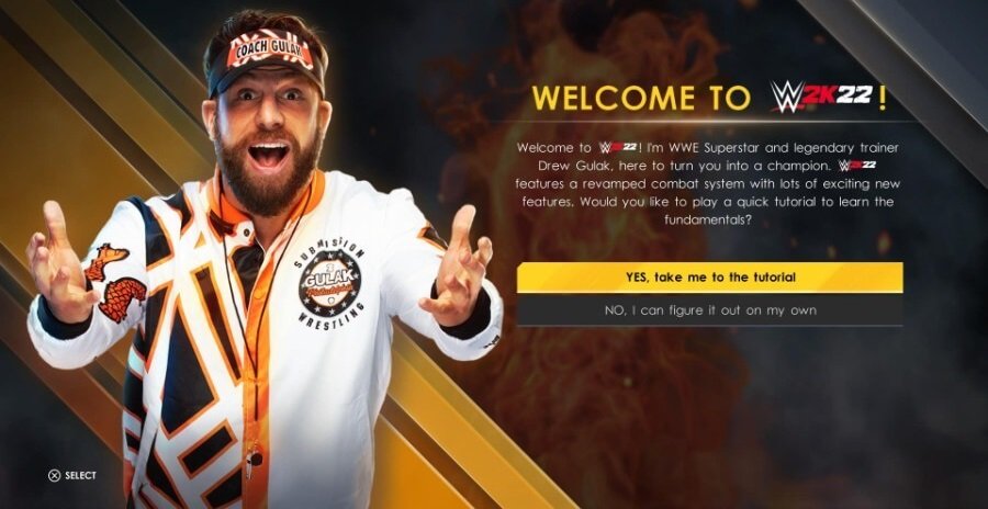 게임을 시작하면 Drew Gulak을 코치로 하여 튜토리얼을 플레이할 것인지 묻는 메시지가 표시됩니다. 컨트롤에 새로운 기능이 있으므로(아래에서 자세히 설명하는 콤보 차단기와 같은) YES를 선택하고 반전 타이밍을 파악하는 것이 좋습니다.
